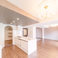 20.7帖のLDK拡張、角丸アーチのモダン和室、90度回転のペニンシュラキッチンで、穏やかに暮らせる上質な空間へ。