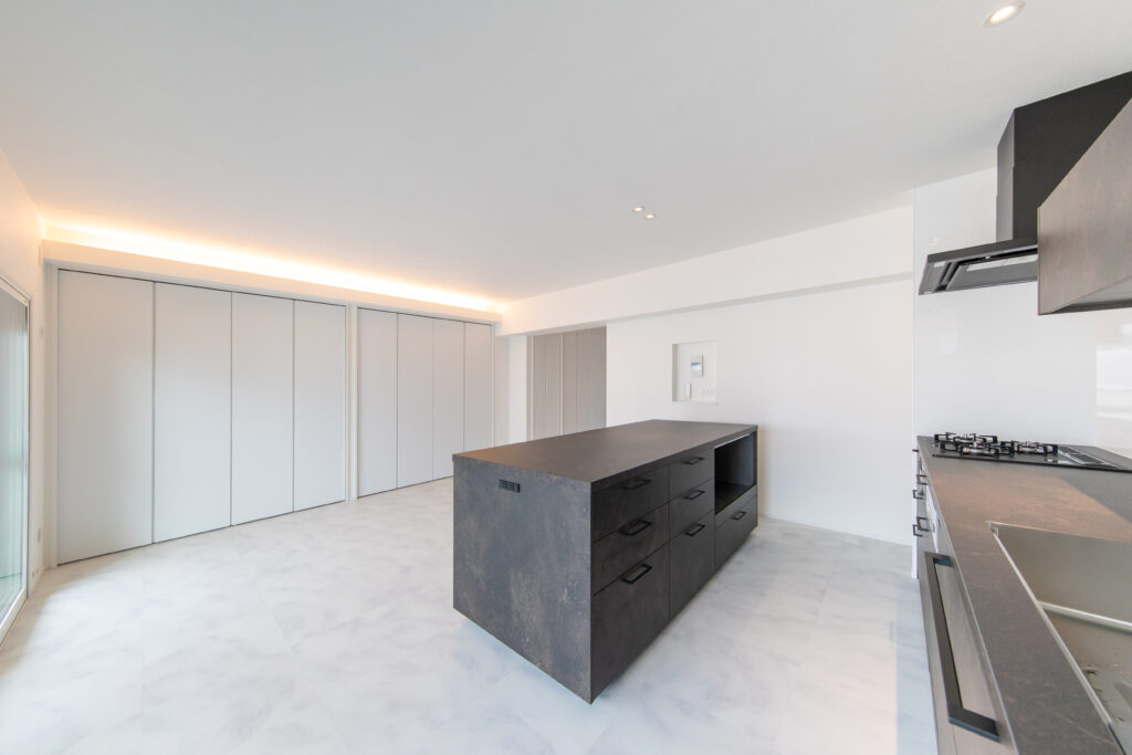 モノを表に出さないことで、空間そのものの美しさと落ち着きを保ちやすくしています。