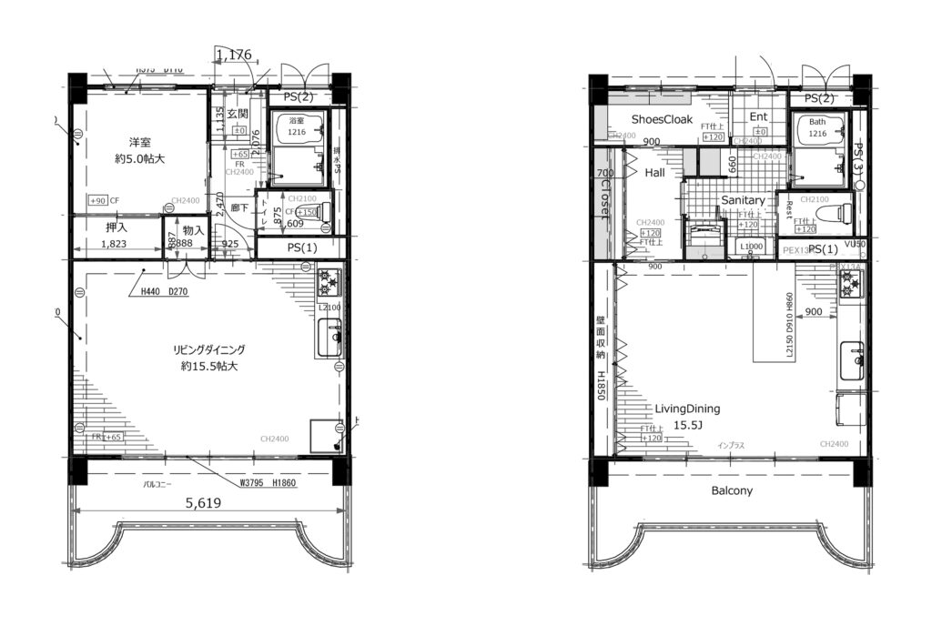 もともと1LDKの間取りではあったものの、部屋が分かれていることが必ずしもご夫婦の暮らしに合っていたわけではなく、空間をもっと自由に、もっと広く使いたいという想いがありました。